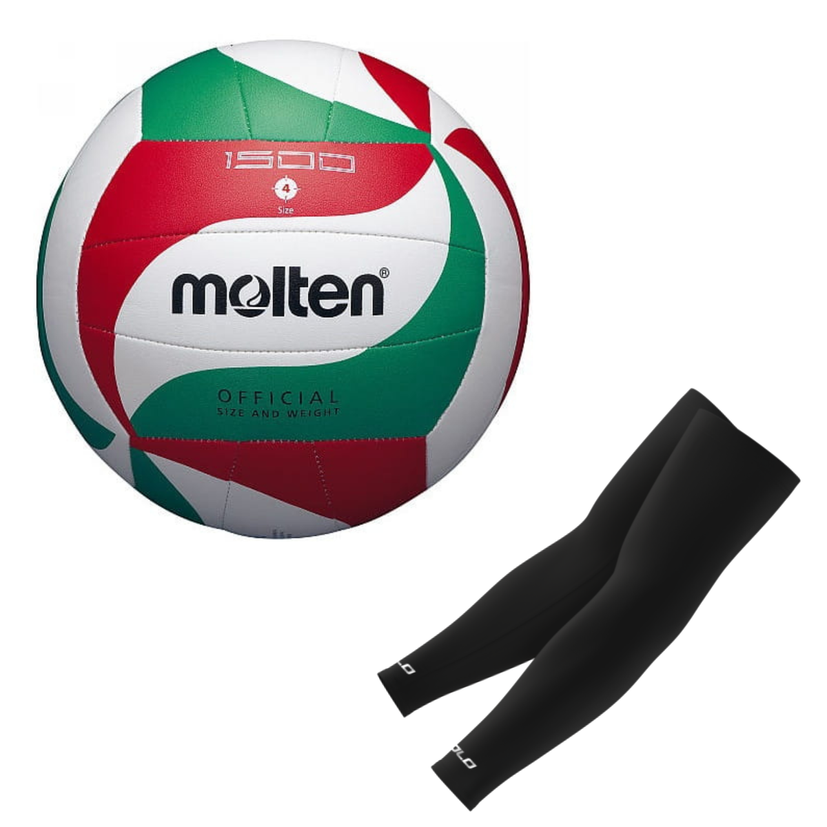 Set Volleyball ball Molten Size 4 V4M1500 + COLO volleyball arm sleeves black L/XL