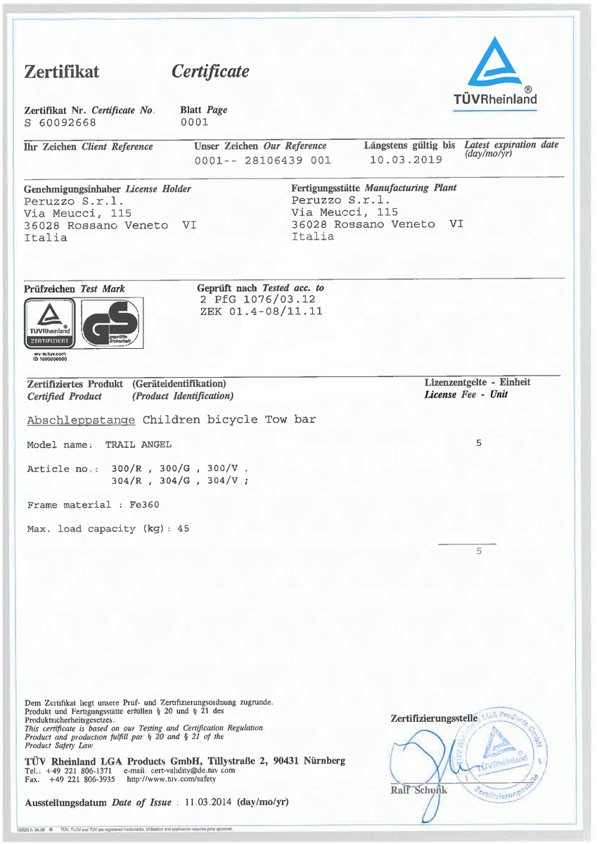 Peruzzo Trail Angel Bike Trailer - PZ-300/R