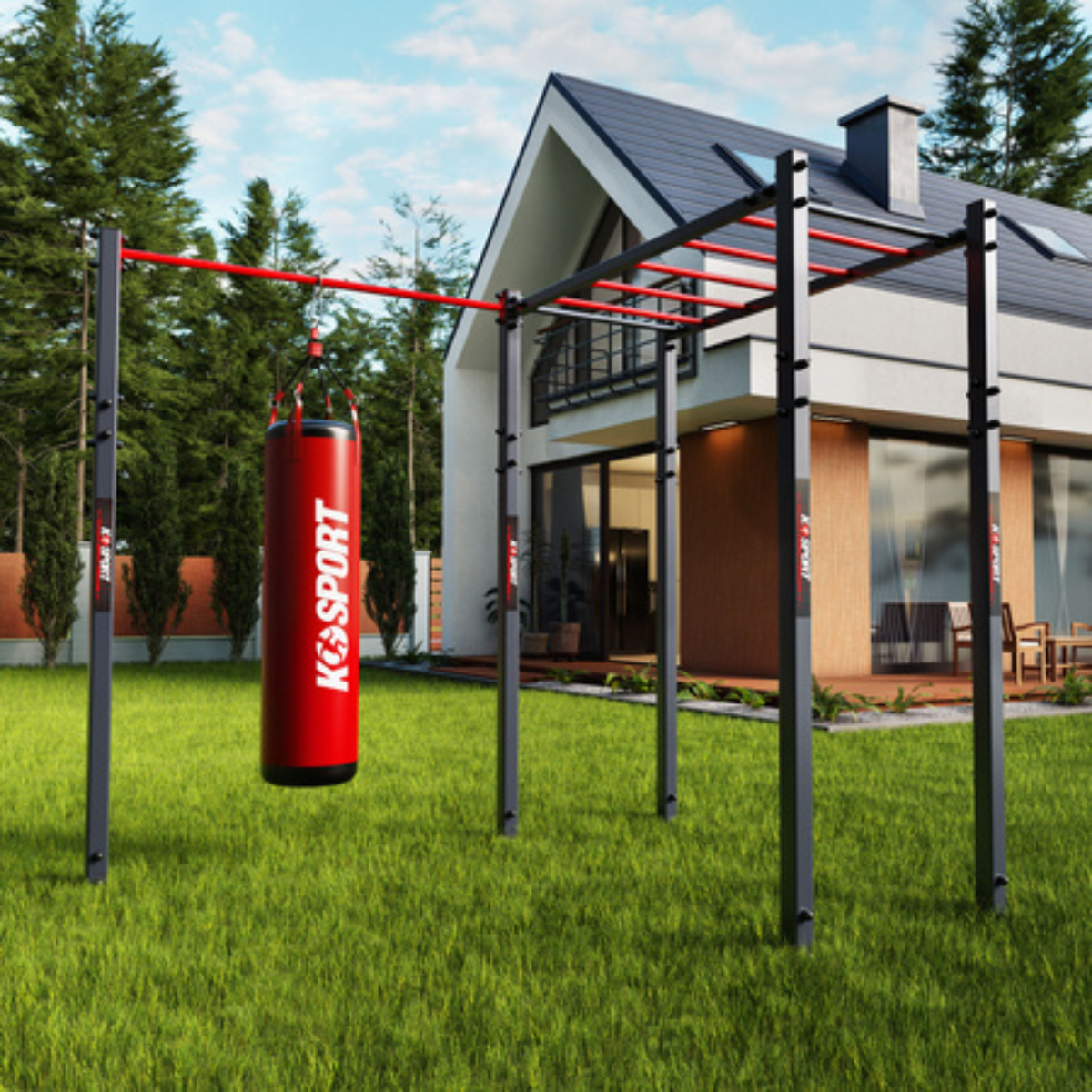 Zewnętrzny tor przeszkód K-SPORT to doskonały wybór dla osób poszukujących solidnego, funkcjonalnego i trwałego sprzętu do treningu na świeżym powietrzu.