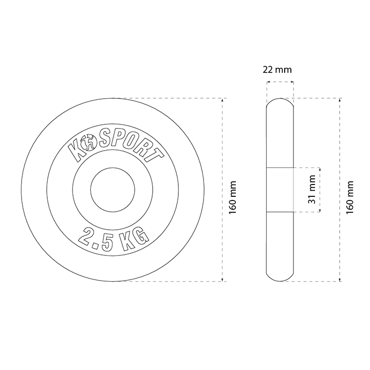 Gym cast iron disc 2,5 kg K-SPORT - O2.5